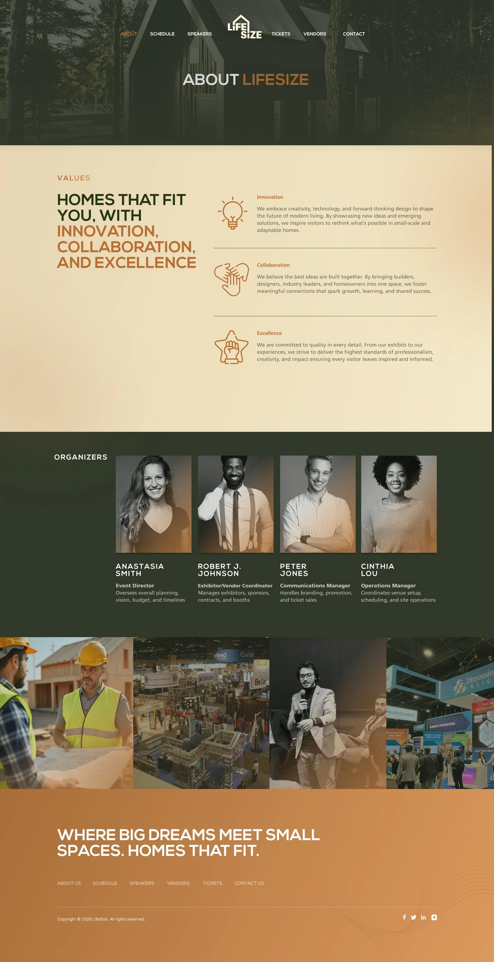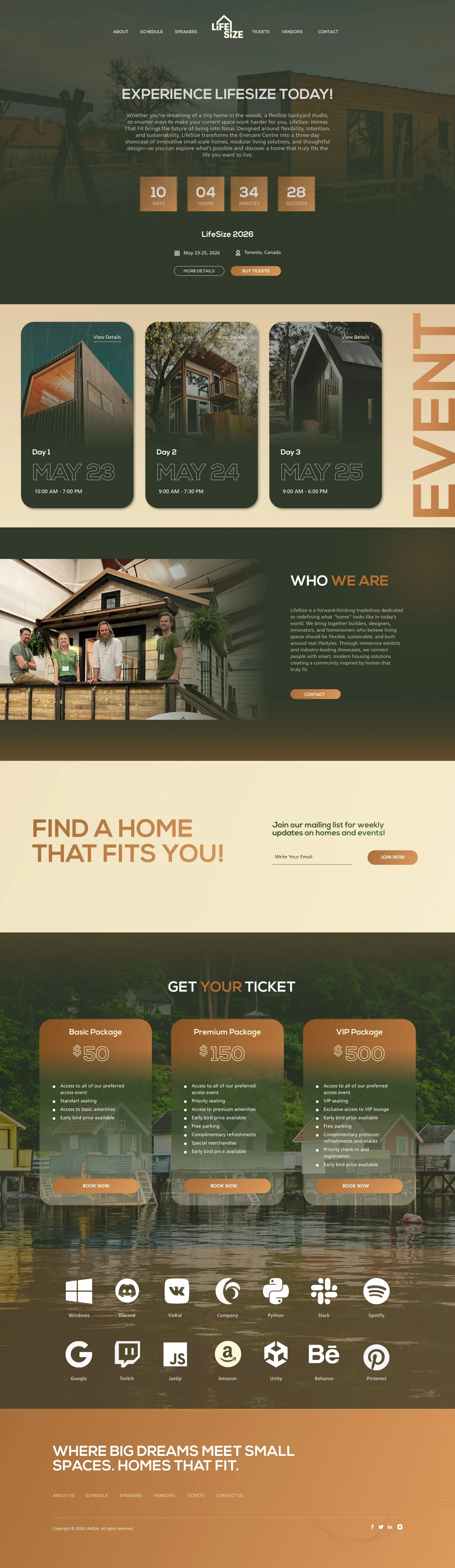 A high-fidelity website prototype created in Figma for the LifeSize tradeshow project. The design communicates the brand’s modern and adaptable identity while showcasing key event information, exhibitors, and visitor resources through intuitive navigation and engaging visuals.